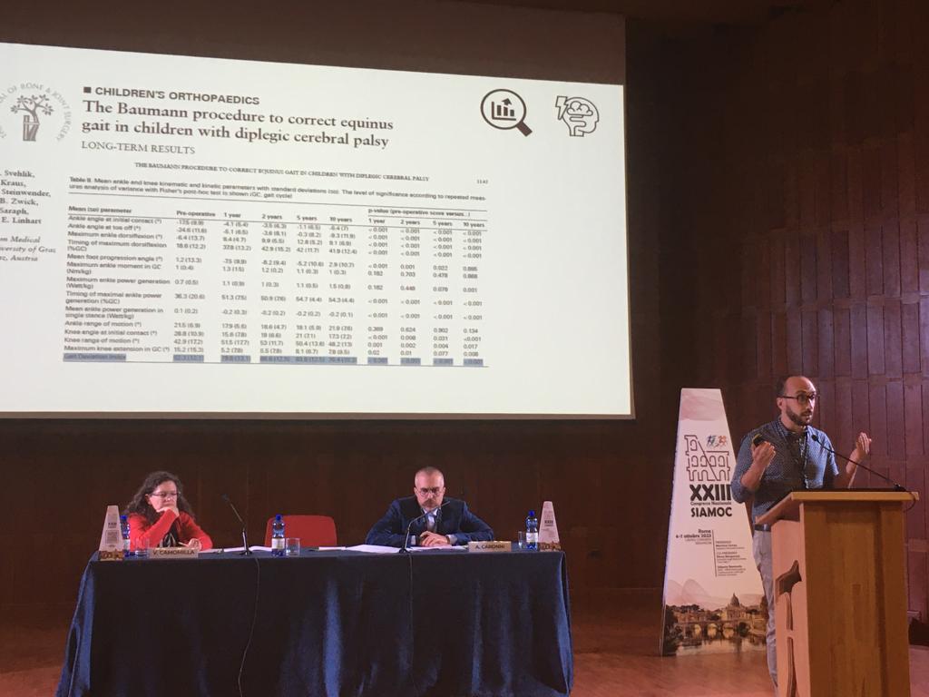 Dr. Giacomo Basini, expert in Physical and Rehabilitation Medicine, presented the study entitled “Gait deviation index to quantify the short-term effect of functional surgery on gait kinematics in patients with cerebral palsy. A prospective cohort study”.